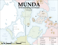 Munda is a small tribal nation on four jungle islands of the Mondego Lakes region. It is currently a protectorate of Adraria, following the end of the Mondego War, which refers to it as the "Formerly Independent Republic of Munda (FIROM)". It was formerly occupied by Ashannar, which called it the "bca_ Containment Zone" prior to the war.